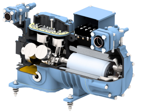 - Полугерметичные поршневые компрессоры (3–70 л.с.)